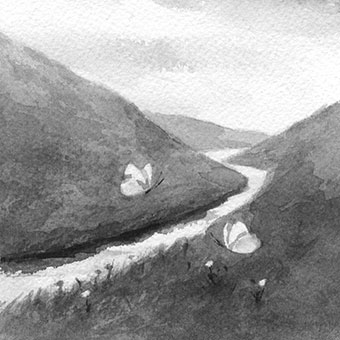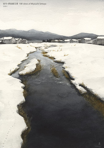 たいと思いました。水彩で薄く何層にも塗られた川の表情と、紙の白さの雪の